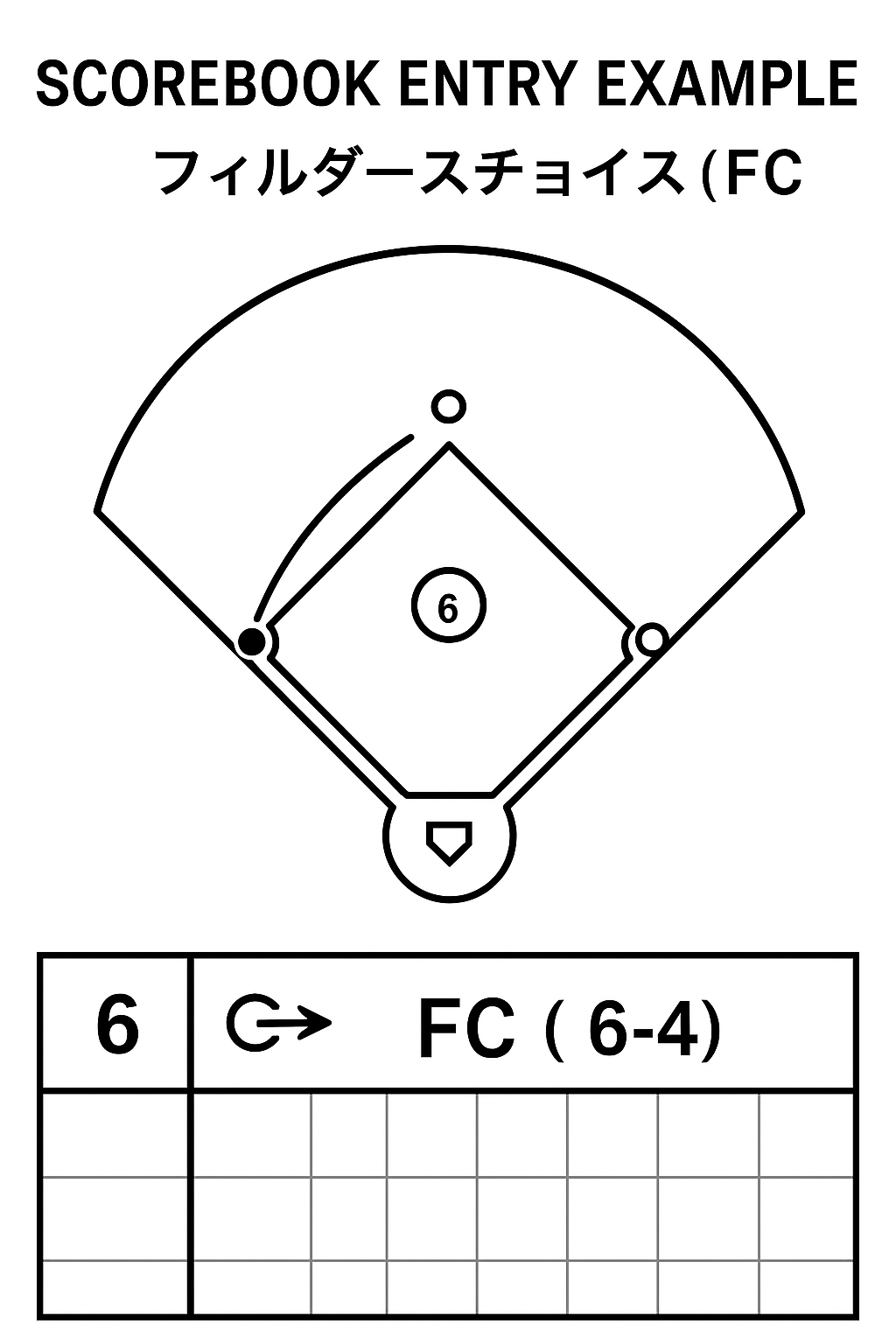 → バッター欄に 「FC(4-6)」 と記入(セカンドからショートへ送球)。